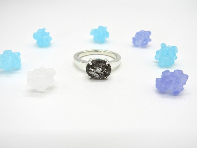 透明な水晶の中に、黒いトルマリンが細い線となって走る トルマライズドクォーツを主役にしたSilver925リングです。 モノトーンの静かな表情が美しく、 ひとつとして同じ模様のない特別な石をお楽しみいただけます。 サイドには落ち着いたブルーのアイオライトと 深みのあるブルートパーズ・ロンドンを添え、 メイン石のクールな雰囲気を引き立てる組み合わせに仕立てました。 こちらのリングは、 メイン石・サイド石をお好みでカスタマイズできるシリーズです。 同じデザインで、ドルジーアゲートを使った作品もご用意していますので、 お好みの色合わせでお作りすることが可能です。 【掲載の作品】 ・素材:Silver925 ・サイズ:12.5号 ・天然石: - メイン:トルマライズドクォーツ(オーバルカット 10×12mm) - サイド:アイオライト+ブルートパーズ(ロンドン)2.5mmカット ※掲載の参考画像です。 【サイズについて】 ・対応サイズ:#10〜15 ・0.5号刻みでの制作も可能です ・オプションにないサイズはお問い合わせください 【カスタマイズについて】 ・サイド石の変更が可能です ・メイン石をドルジーアゲートに変更したデザインもございます ・ご希望の組み合わせがあればお気軽にご相談ください 【制作期間】 ご注文をいただいてから、石の表情に合わせて ひとつずつ丁寧にお仕立てしております。 そのため、お届けまでに 1ヶ月ほど お時間を頂戴いたします。 ゆっくりと形になっていく過程も含めて、 楽しみにお待ちいただけましたら幸いです♪ 【天然石について】 天然石には、インクルージョン(内包物)やクラック、 色味の個体差がございます。 制作前に写真でご確認いただけますのでご安心ください。