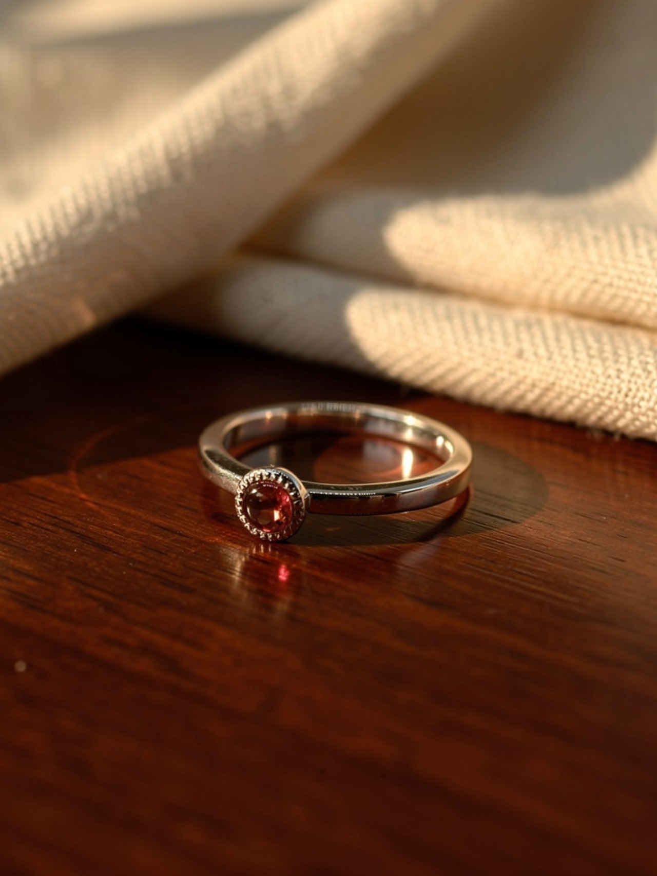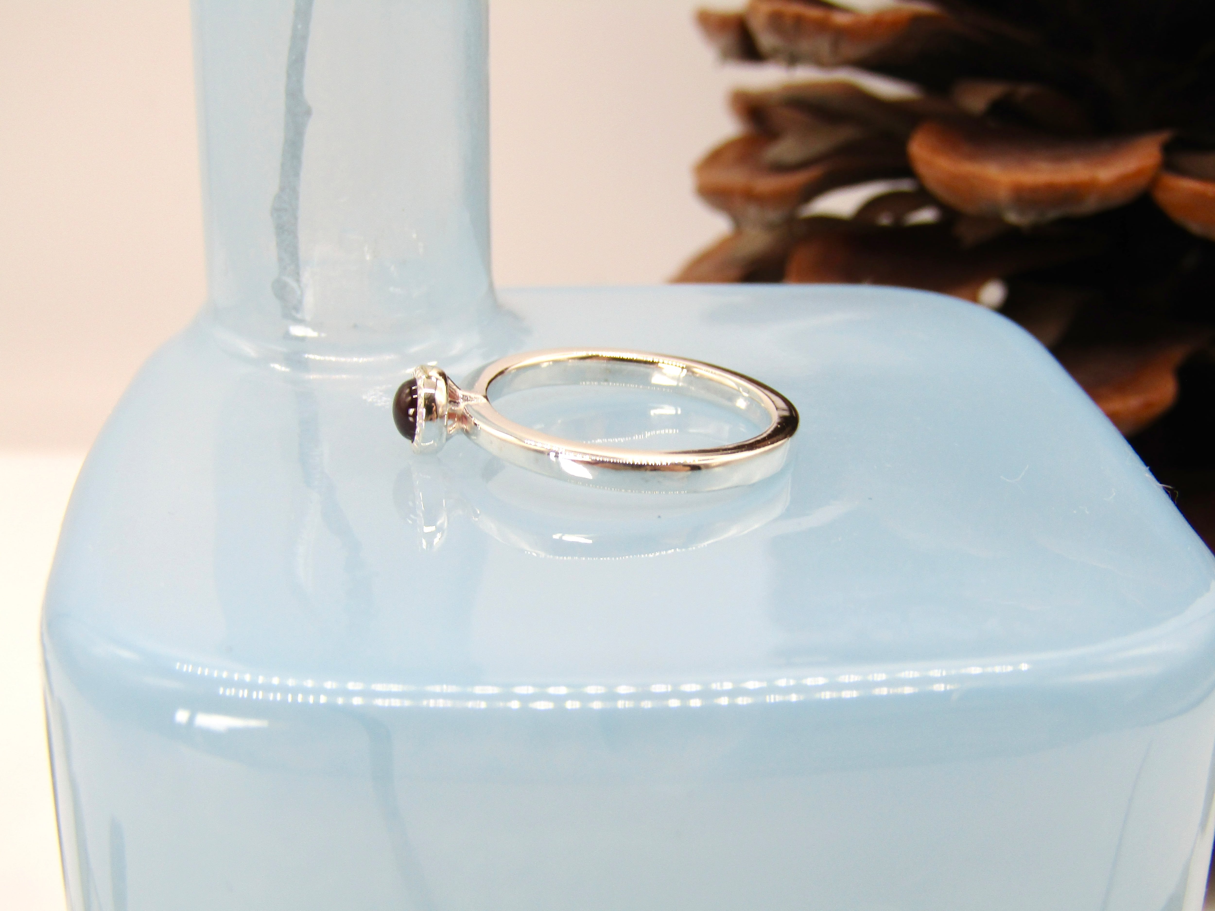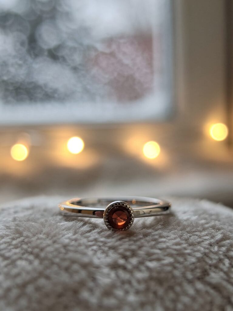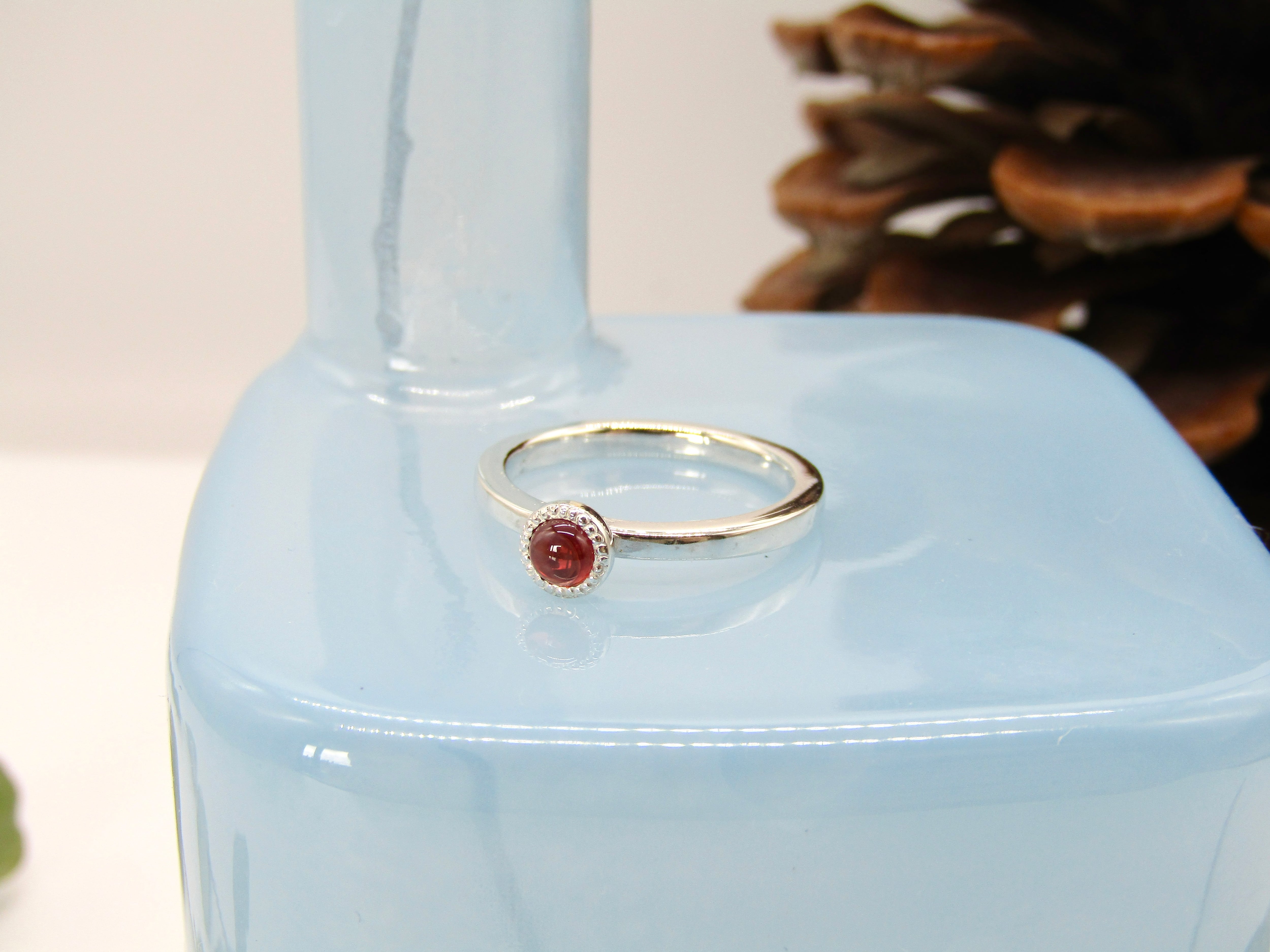 華奢なシルバーリングに、小さなガーネットが静かにきらめくデザインです。