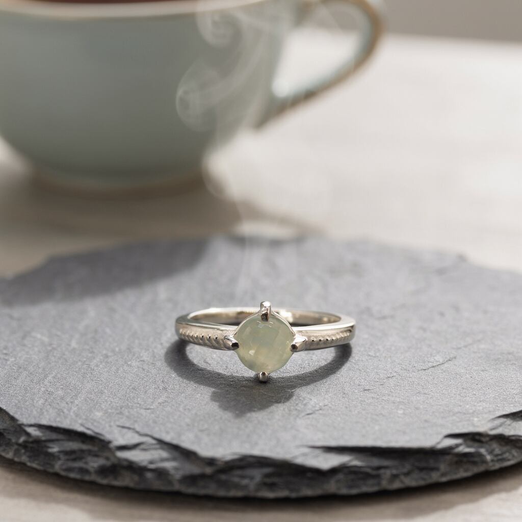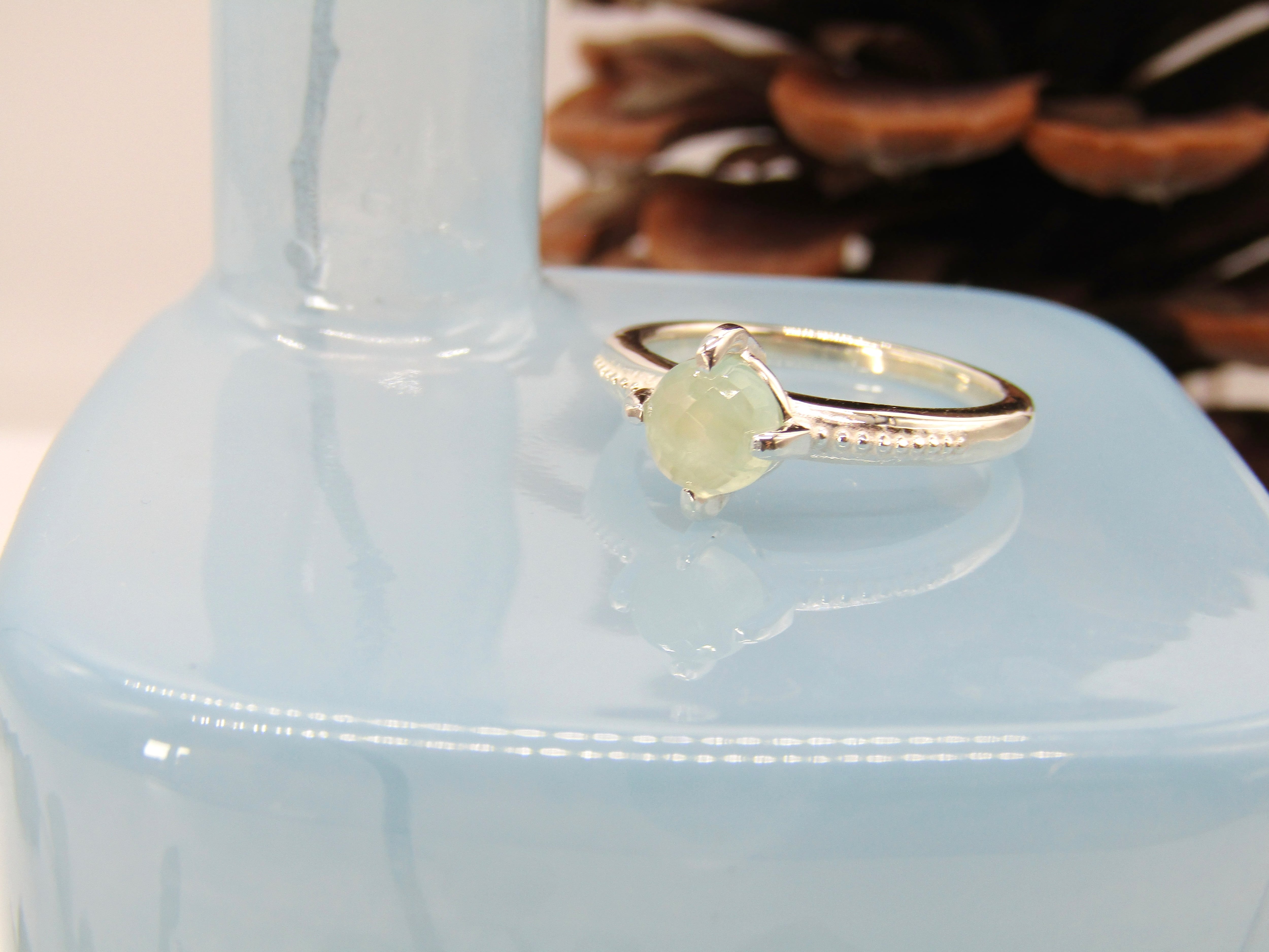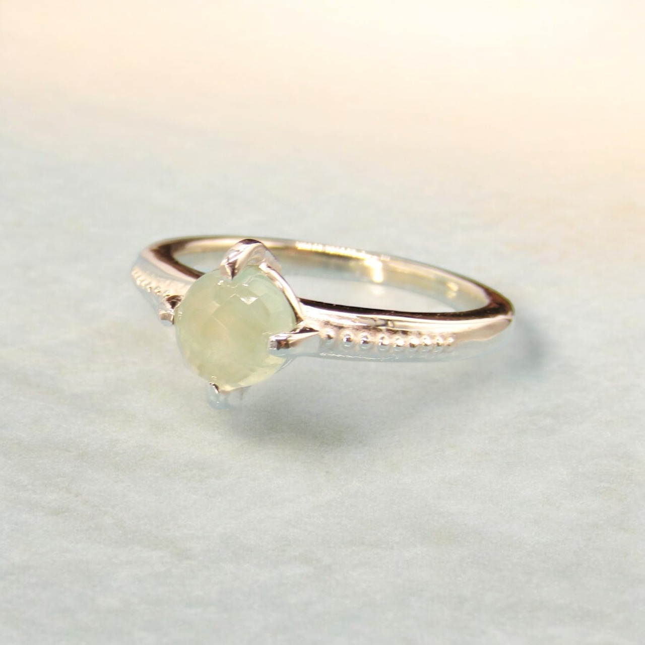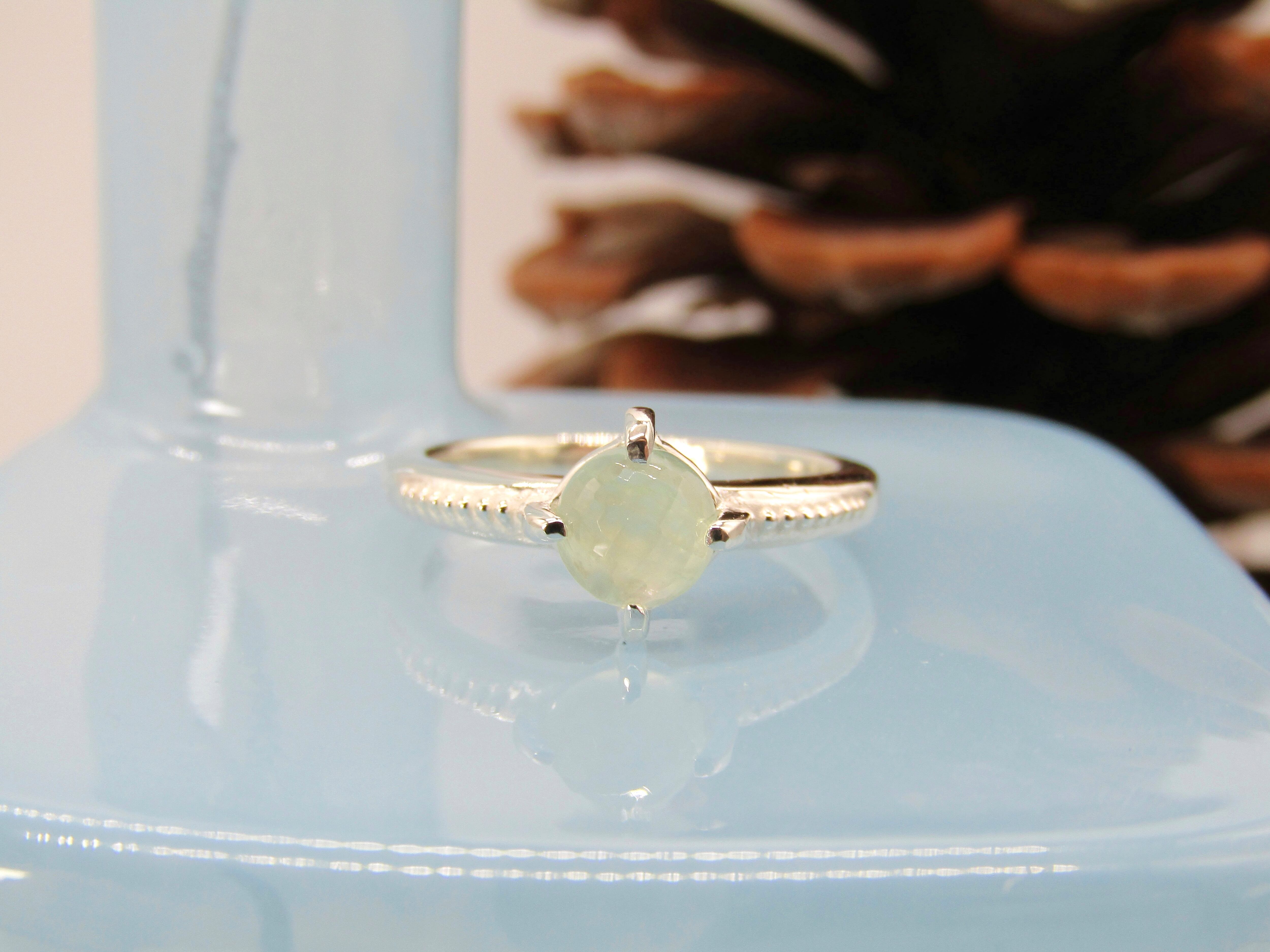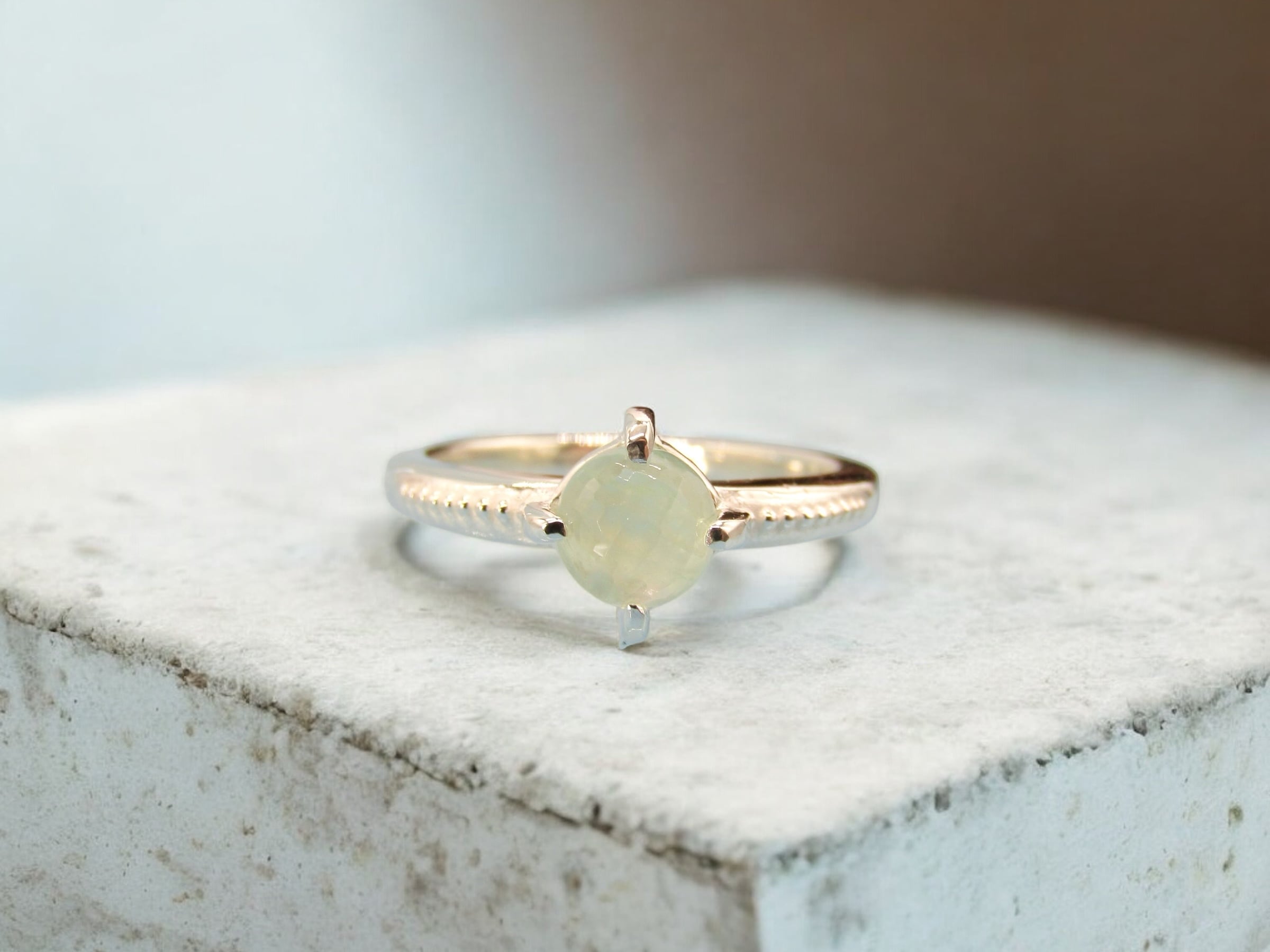 6mmの格子柄カットが施されたカボションは、光をふんわりと受け止め、
